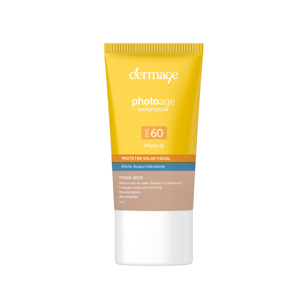 ENTENDENDO O PHOTOAGE WATER COLOR O filtro solar que revolucionou sua proteção diária, agora em versão com cor. Com FPS60 e FPUVA 23, o Photoage Water Color chega com alta proteção UVA/UVB. Sua formulação não irrita os olhos, ajuda a proteger contra os efeitos nocivos da luz azul e contribui para a redução de poros, além de proporcionar ação calmante e antioxidante. PARA QUEM É INDICADO? O Photoage Water Color é indicado para a proteção diária de todos os tipos de pele. ENTENDA A TECNOLOGIA UV DOUBLE PROTECT Com duplo revestimento a base de água, cria uma película protetora invisível e confortável, protegendo até as irregularidades da pele. QUAIS SÃO OS ATIVOS NO PHOTOAGE WATER COLOR? Hialuronato de sódio: derivado do ácido hialurônico, com potente ação hidratante. Nicotinamida: também conhecida como niacinamida, é uma vitamina essencial do complexo B. Possui propriedades anti-inflamatórias, hidratantes, contribui com a redução dos poros e ajuda a proteção contra a luz azul. Vitamina E: potente ativo antioxidante que promove firmeza e viço para a pele. Bisabolol: possui propriedades anti-irritantes e auxilia na prevenção da acne e irritações da pele. BENEFÍCIOS- FPS60 e PPD / FPUVA 23